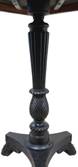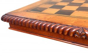 This is a really beautiful 19th century games table, constructed using high quality timbers and very skillfully put together. The carving of the gadrooned edge is superb, as is the carving on the column. It also retains its lovely original paw feet which are really nice.