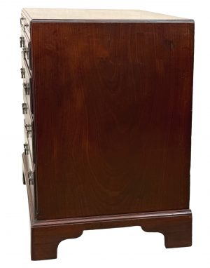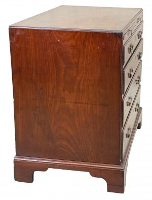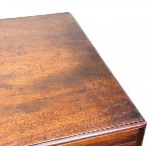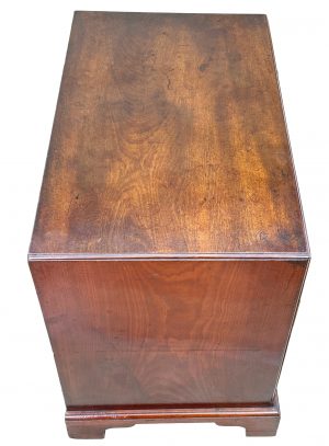 A chest of drawers of relatively commonly form for the period it was made, this specific chest of drawers does however boast some really great features which help set it apart from the masses. These include the exceptional quality of construction, the use of the well figured, rich mahogany timbers and the practical dimensions. It also has a particularly nice caddy moulded edge to the top which is significantly rarer than the more commonly found thumbnail moulding and a really nice feature.