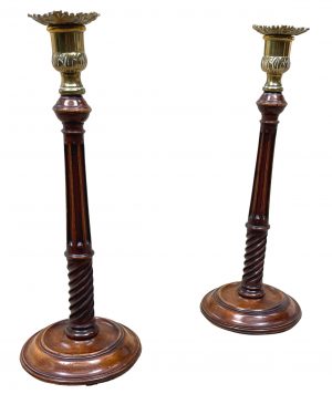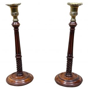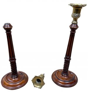 18th Century Mahogany & Brass Candlesticks (England, circa 1760)