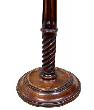A Very Good Quality And Attractive 18th Century Georgian Pair Of Mahogany And Brass Candlesticks, Having Charming Foliate Cast Brass Nozzles Over Elegant Fluted, Turned Shafts, With Twisted Carving To Bottom Raised On Circular Moulded Disc Bases.