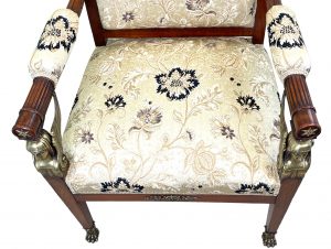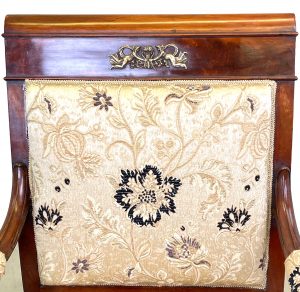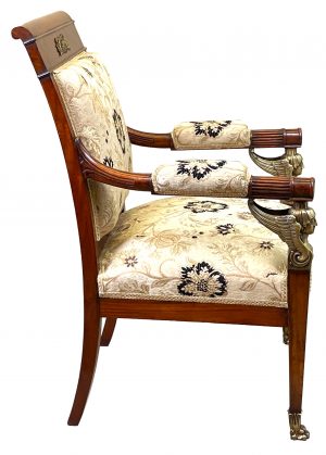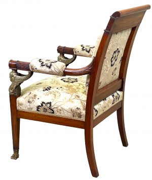 This chair bears great resemblance to many other documented and signed works by the great Paris furniture making firm of Jacob-Desmalter and could quite easily have been produced in their workshops.
