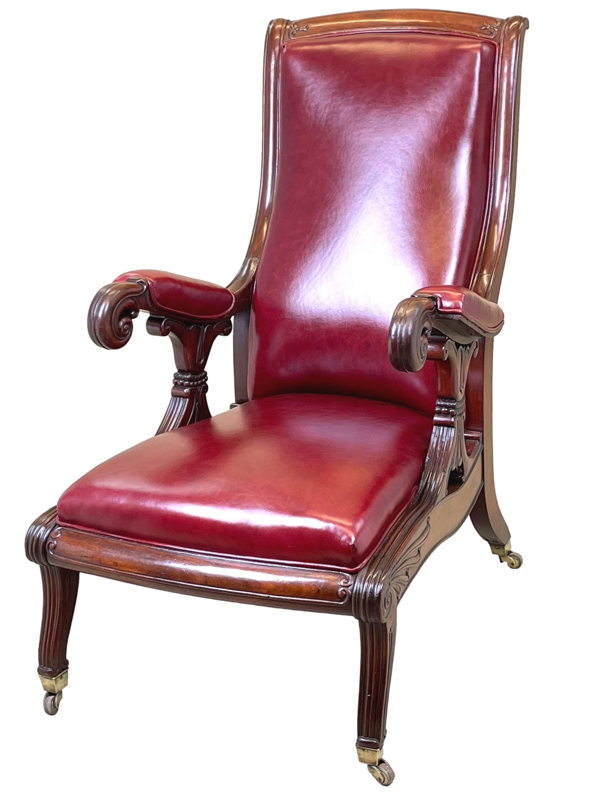 This exceptional quality 19th Century William IV period mahoghany library chair is of a relatively unusual form which exudes elegance, class and sophistication.
