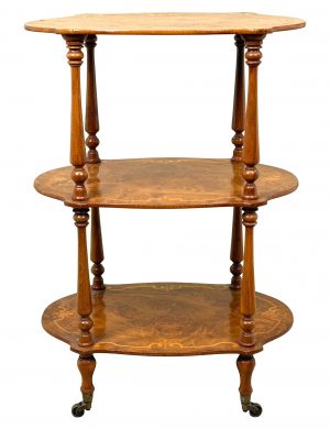 The word Étagère is derived from the French word for a set of open freestanding shelves and although in England the term Whatnot is much more common the two phrases are pretty much always interchangeable these days, although more often than not you will find that the term Whatnot is used to describe larger variations of this design, whereas Étagère will be used to describe this smaller variants.