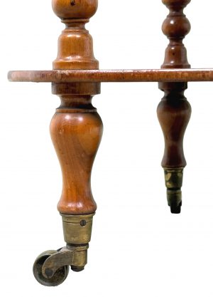 A wide variety of these 19th century low Étagères, or whatnots can be found on the market these days, as they are very popular items indeed, mainly due to their incredible versatility in terms of function and the great elegance which they can add to many settings. But of course with variety and volume in design comes discrepancies in quality and construction. As a general rule the earlier in date the better the article, but this is a little bit of an exception as it is lovely quality and very well made indeed. Although it is not stamped or signed we feel it could well have come from the workshops of Holland & Sons or similar.