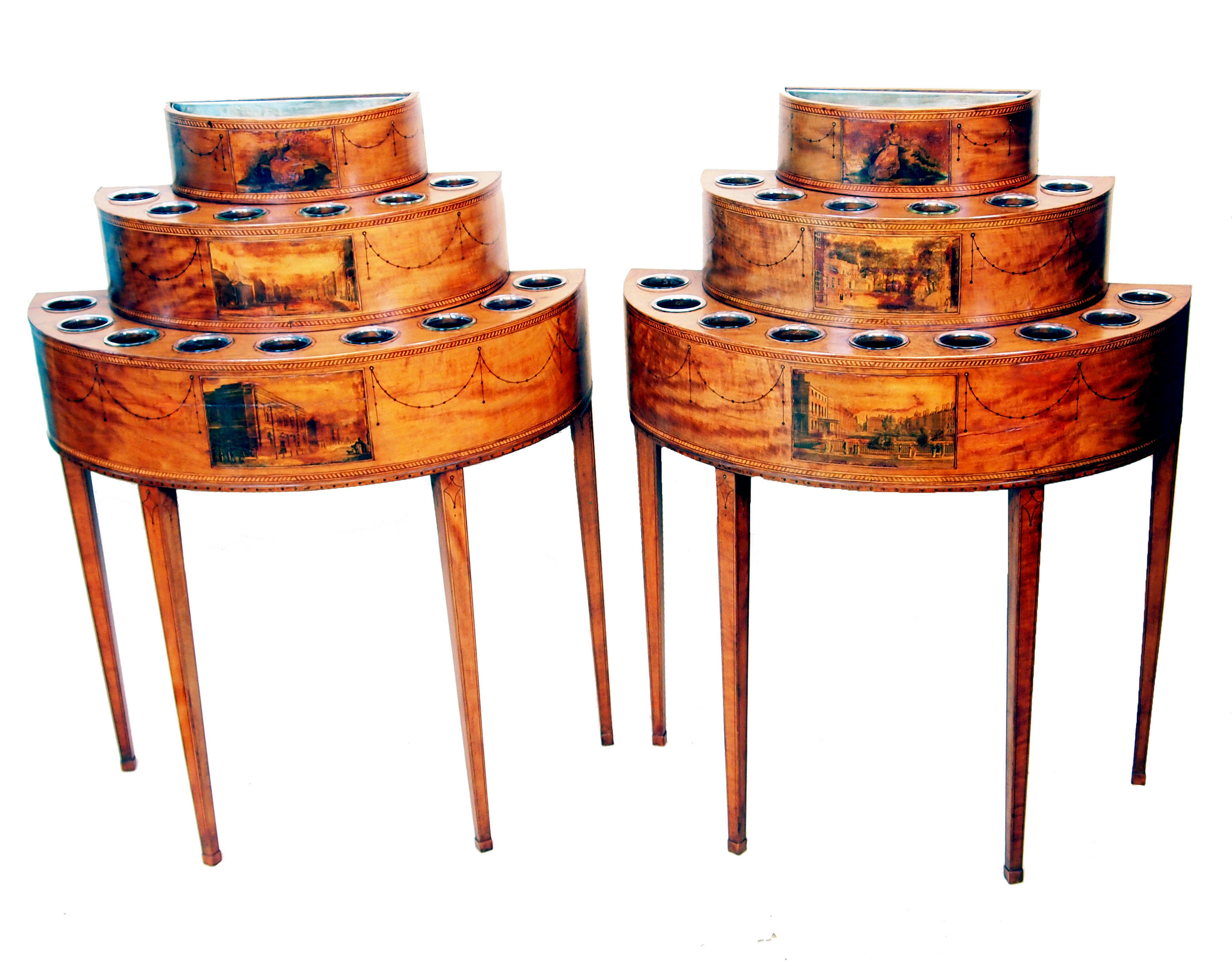 Satinwood Flower Stands, Or Tables, Of Demi Lune Shape Having