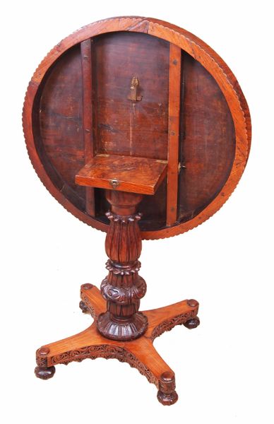 Having Well Figured Circular Tilting Top With Carved Frieze Raised On Superbly Carved
