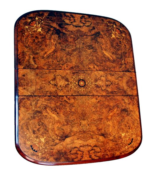 Having Superbly Figured Two Flap Top With Marquetry Inlaid Decoration Raised