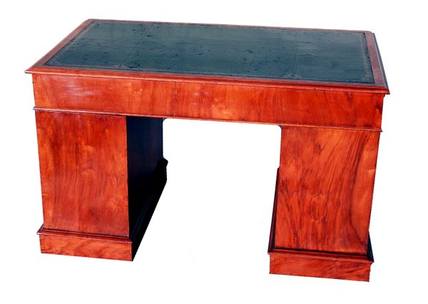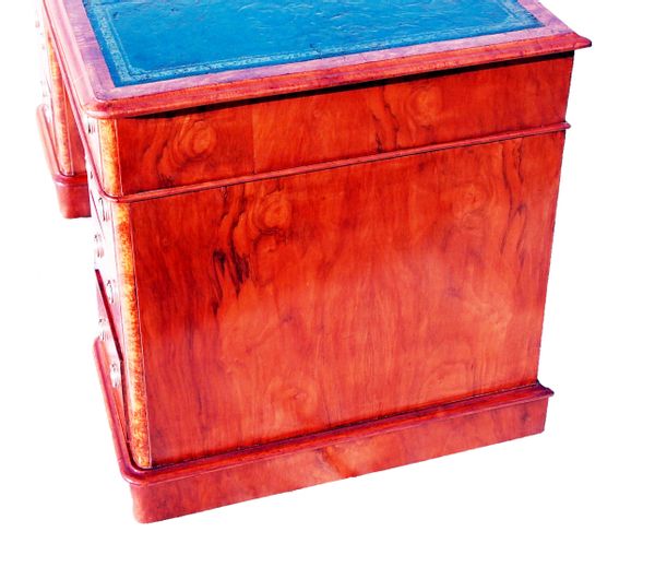 Antique 19th Century Burr Walnut Pedestal Desk (England, circa 1860)