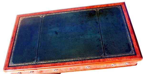 Gilt Tooled Leather Top Above Nine Drawers With Replacement