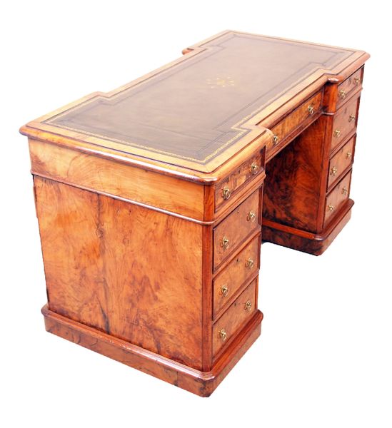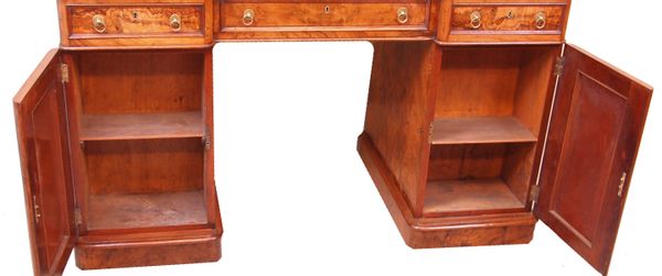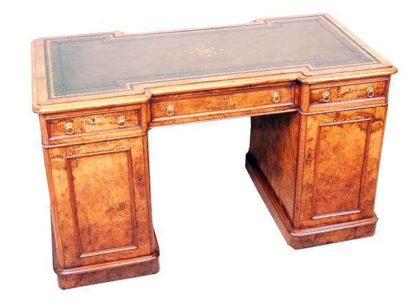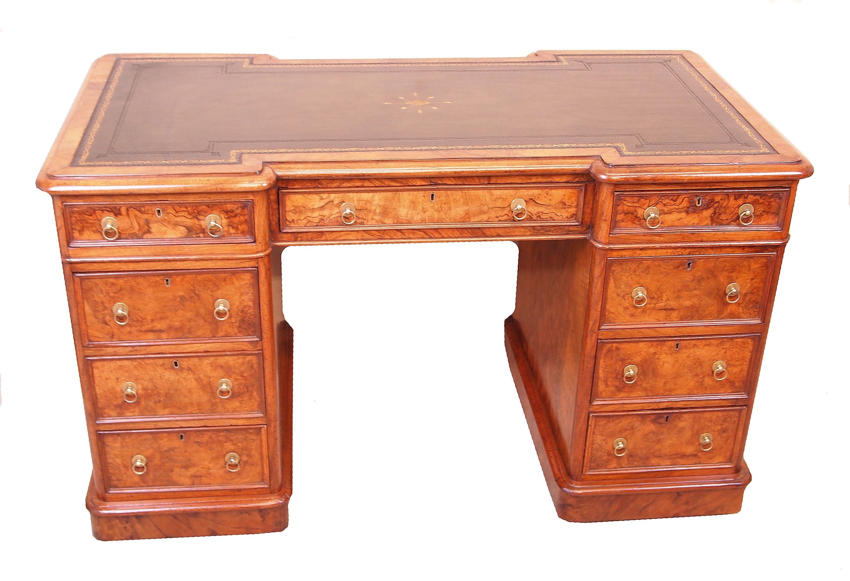 Antique 19th Century Burr Walnut Pedestal Desk (England, circa 1860)