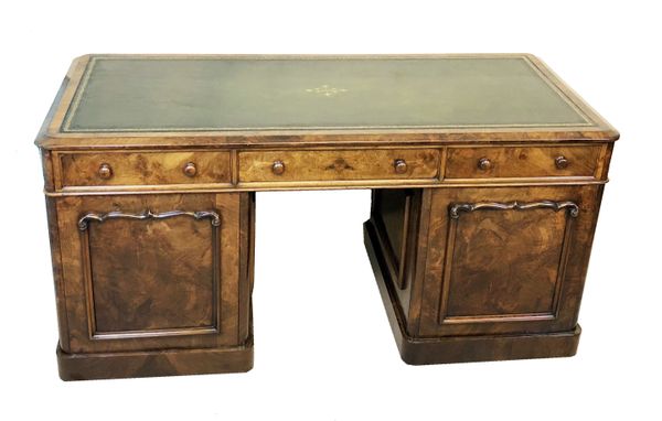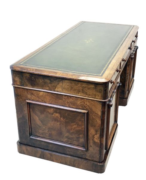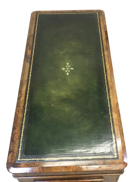 Antique 19th Century Burr Walnut Pedestal Desk (England, circa 1860)