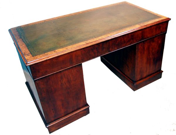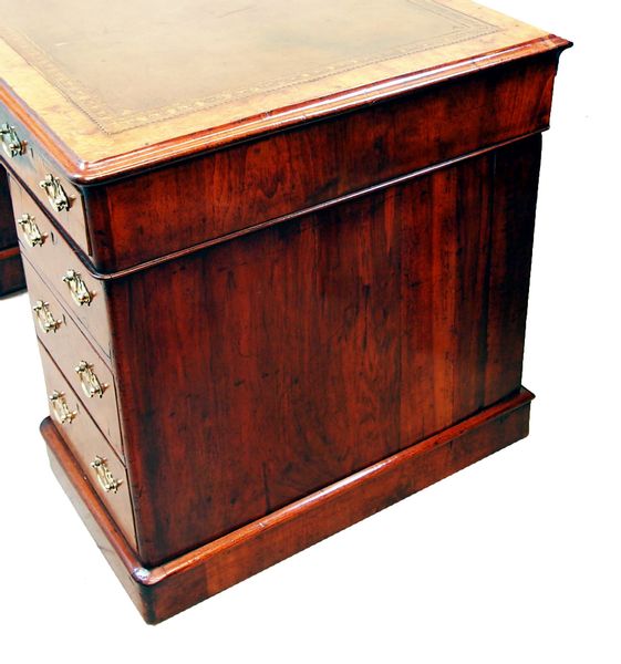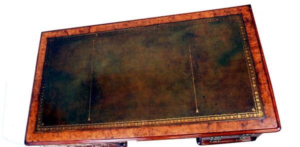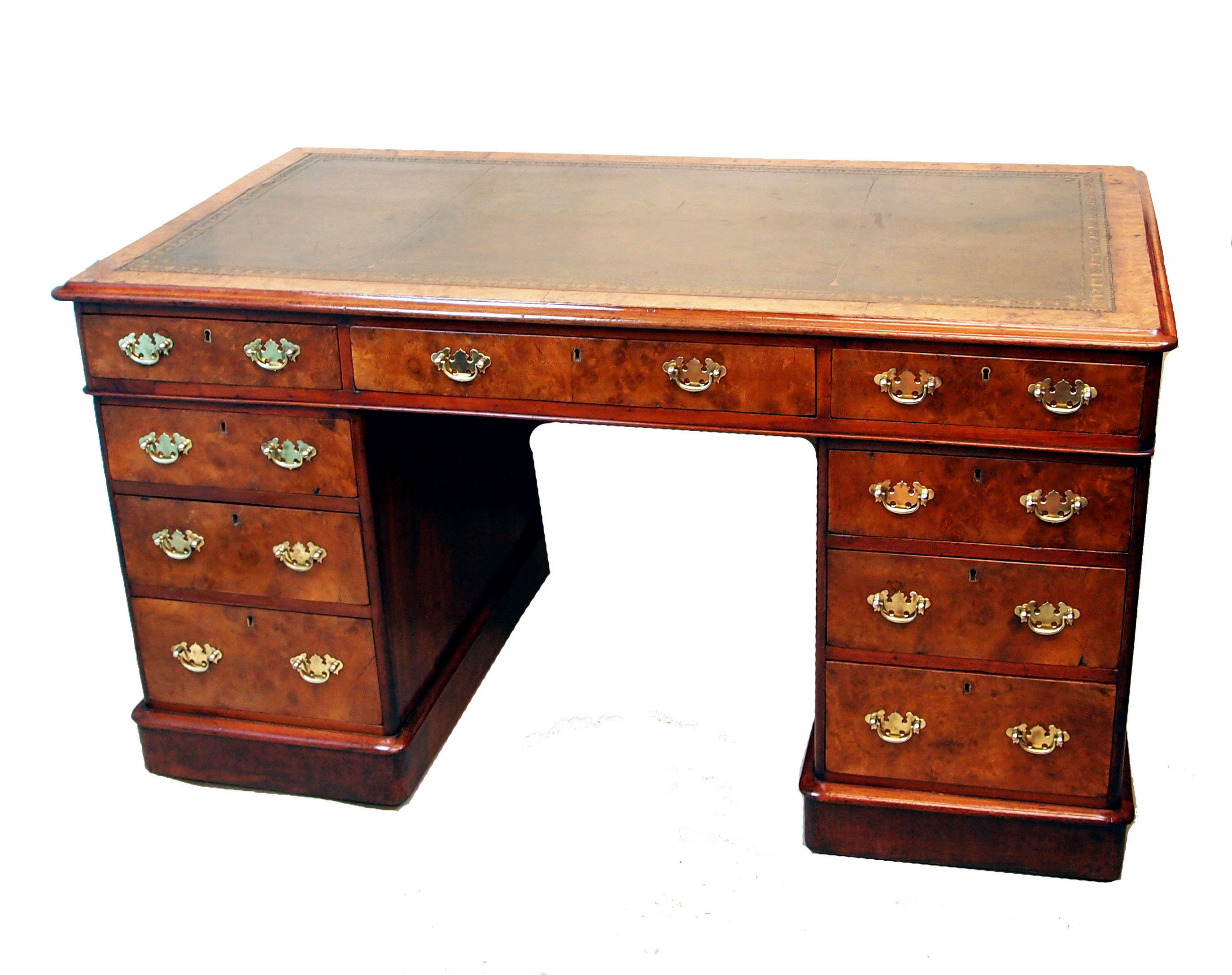 Antique 19th Century Burr Walnut Pedestal Desk (England, circa 1860)