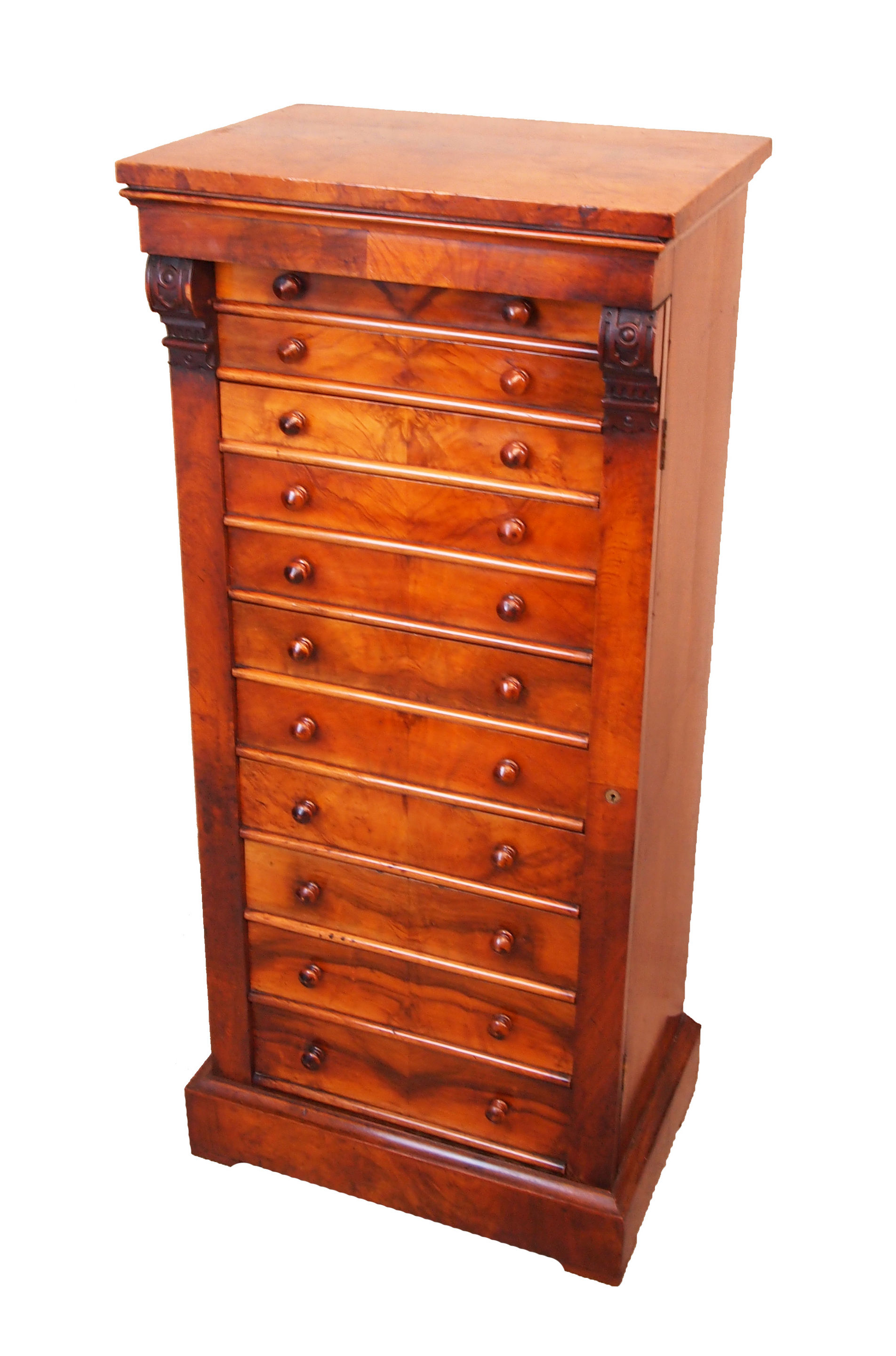 Antique 19th Century Burr Walnut Wellington Chest (England, circa 1870)