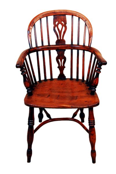 Antique 19th Century Matched Set Of Six Yew Wood Windsor Chairs (England, circa 1840)
