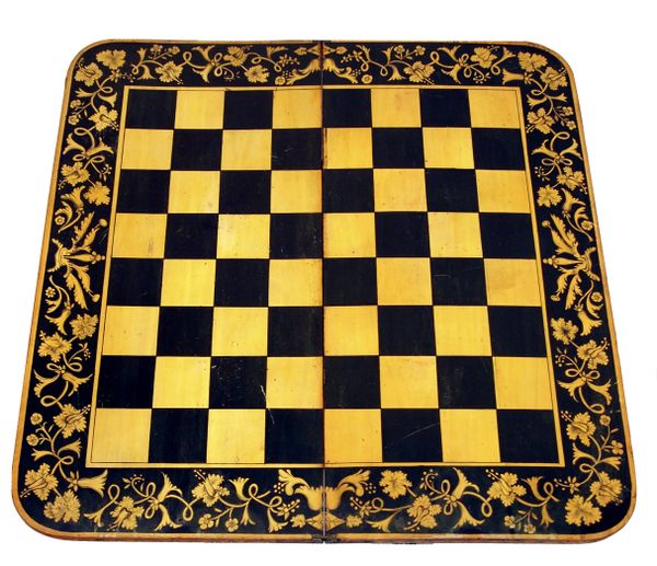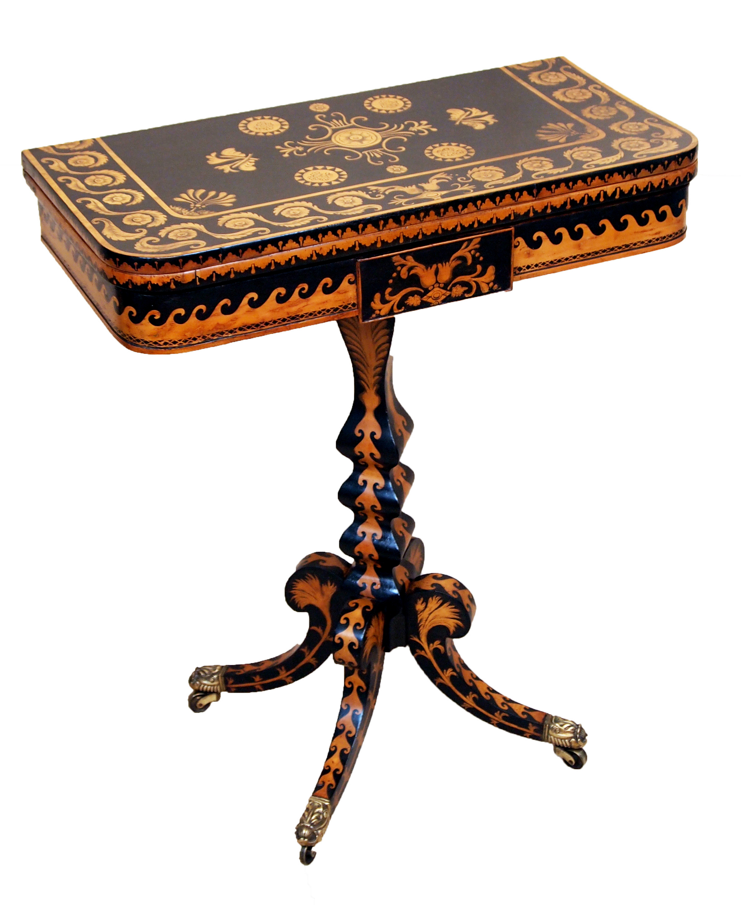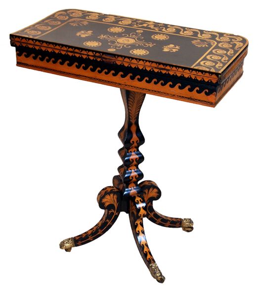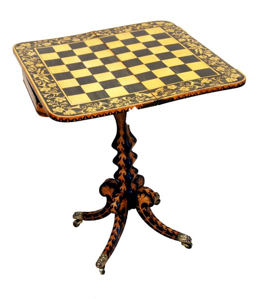Antique 19th Century Penwork Decorated Games Table (England, circa 1830)