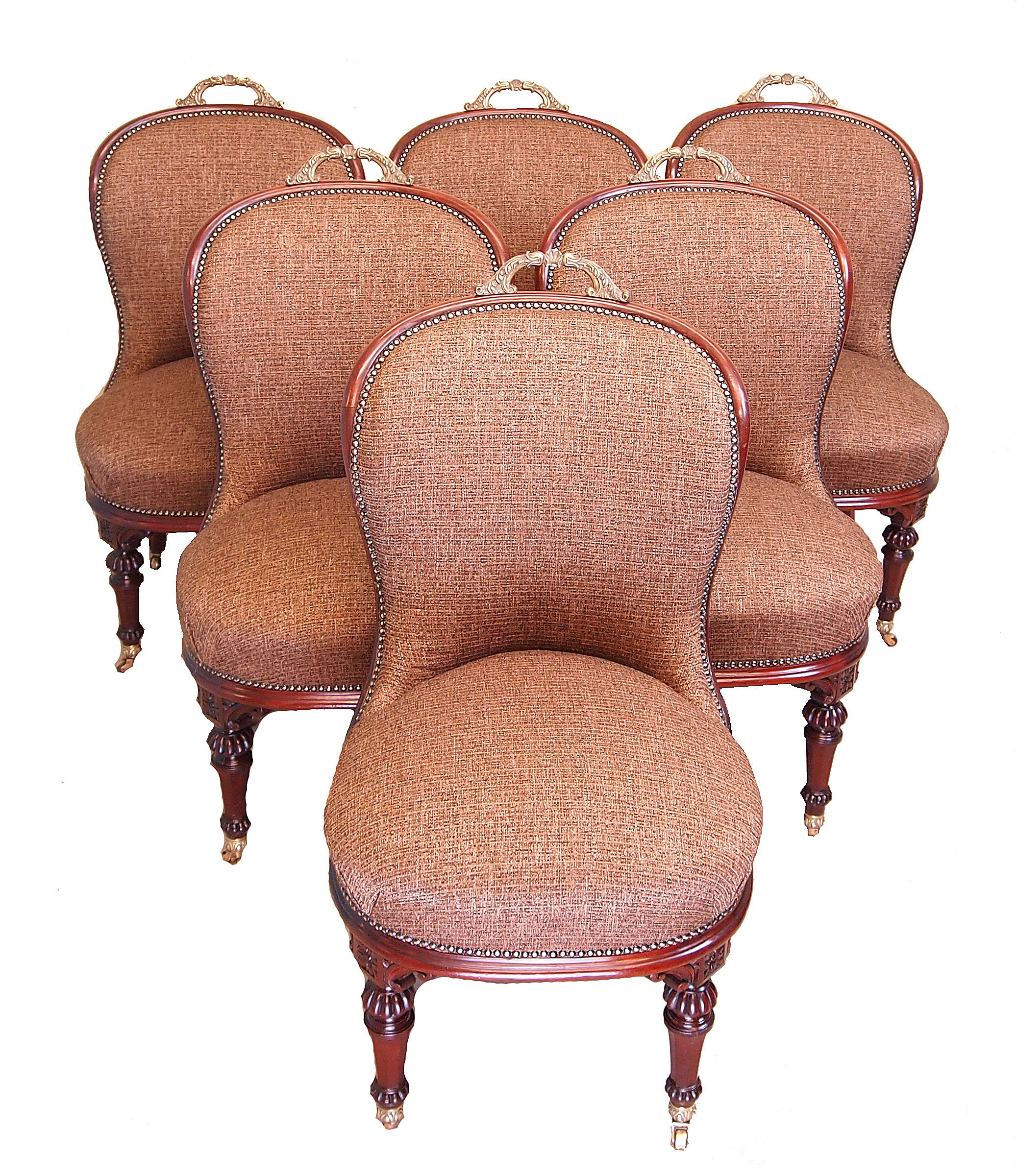 Antique 19th Century Set Of Six Walnut Salon Dining Chairs (England, circa 1840)