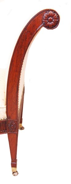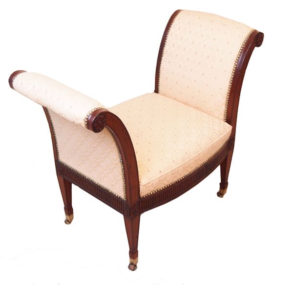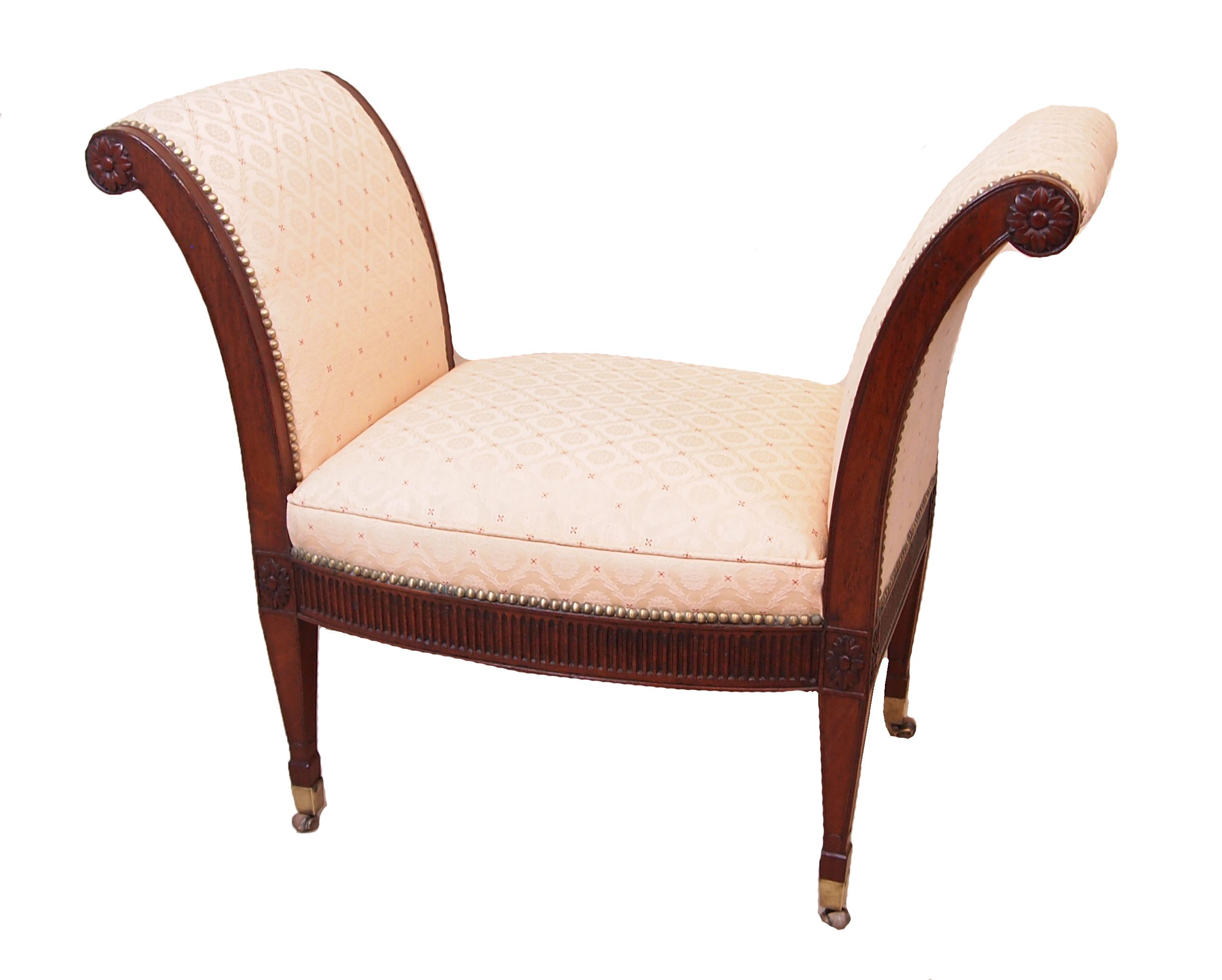 Mahogany & Upholstered Window Seat Having Double Scroll