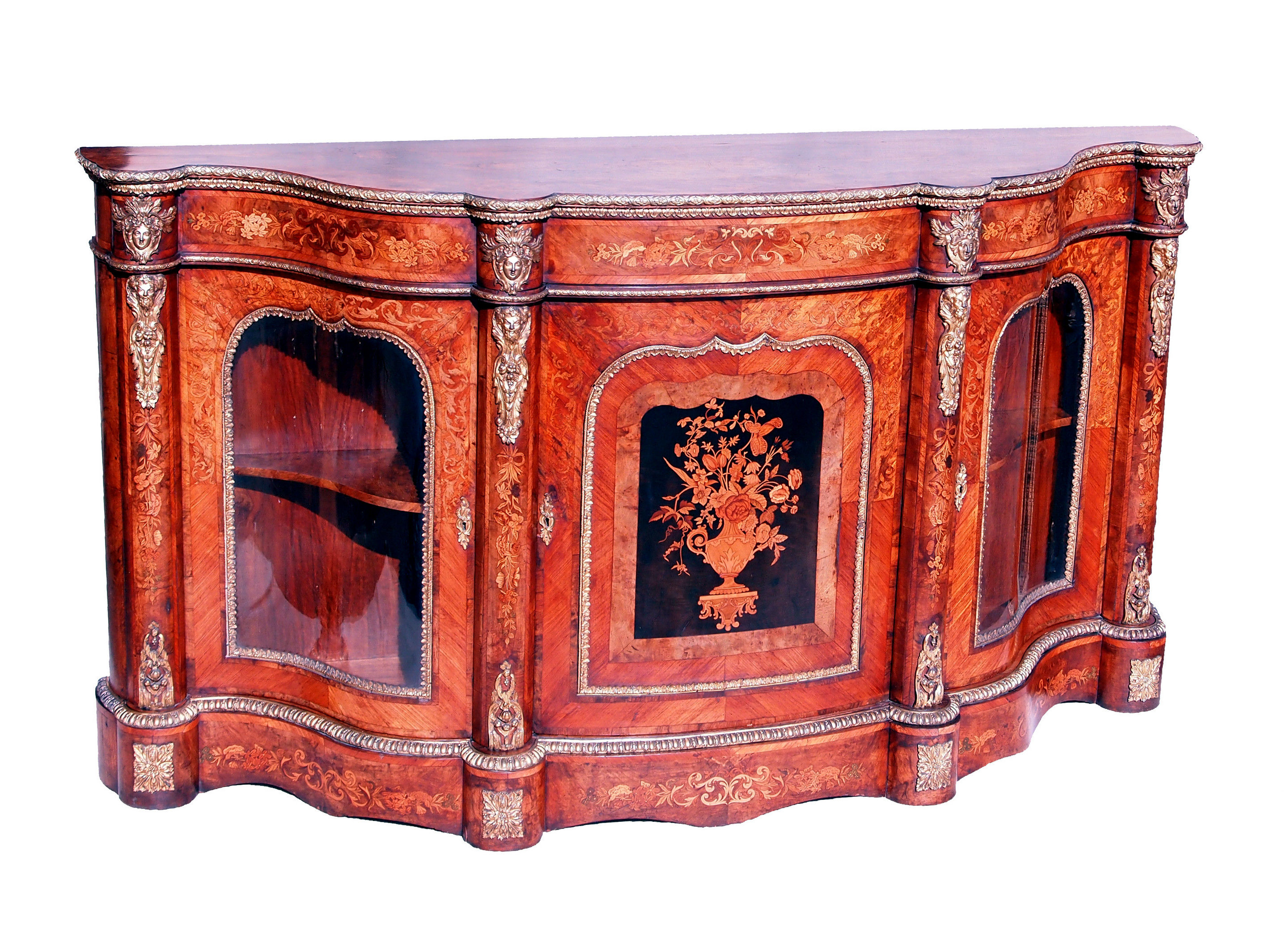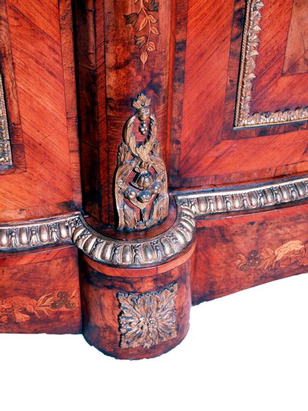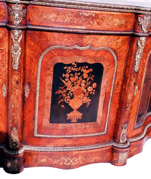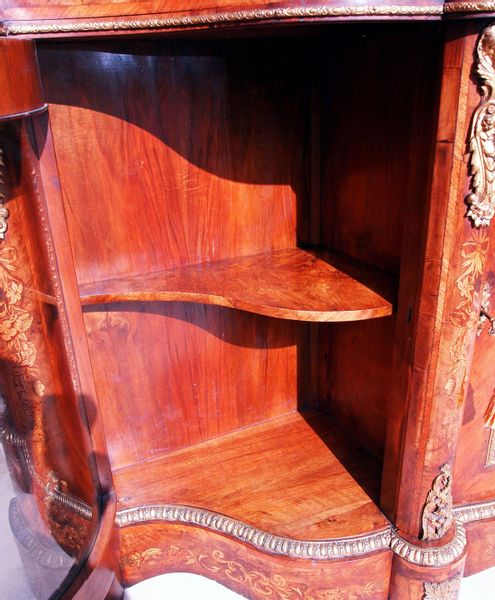 Antique 19th Century Walnut And Marquetry Credenza Side Cabinet (England, circa 1850)