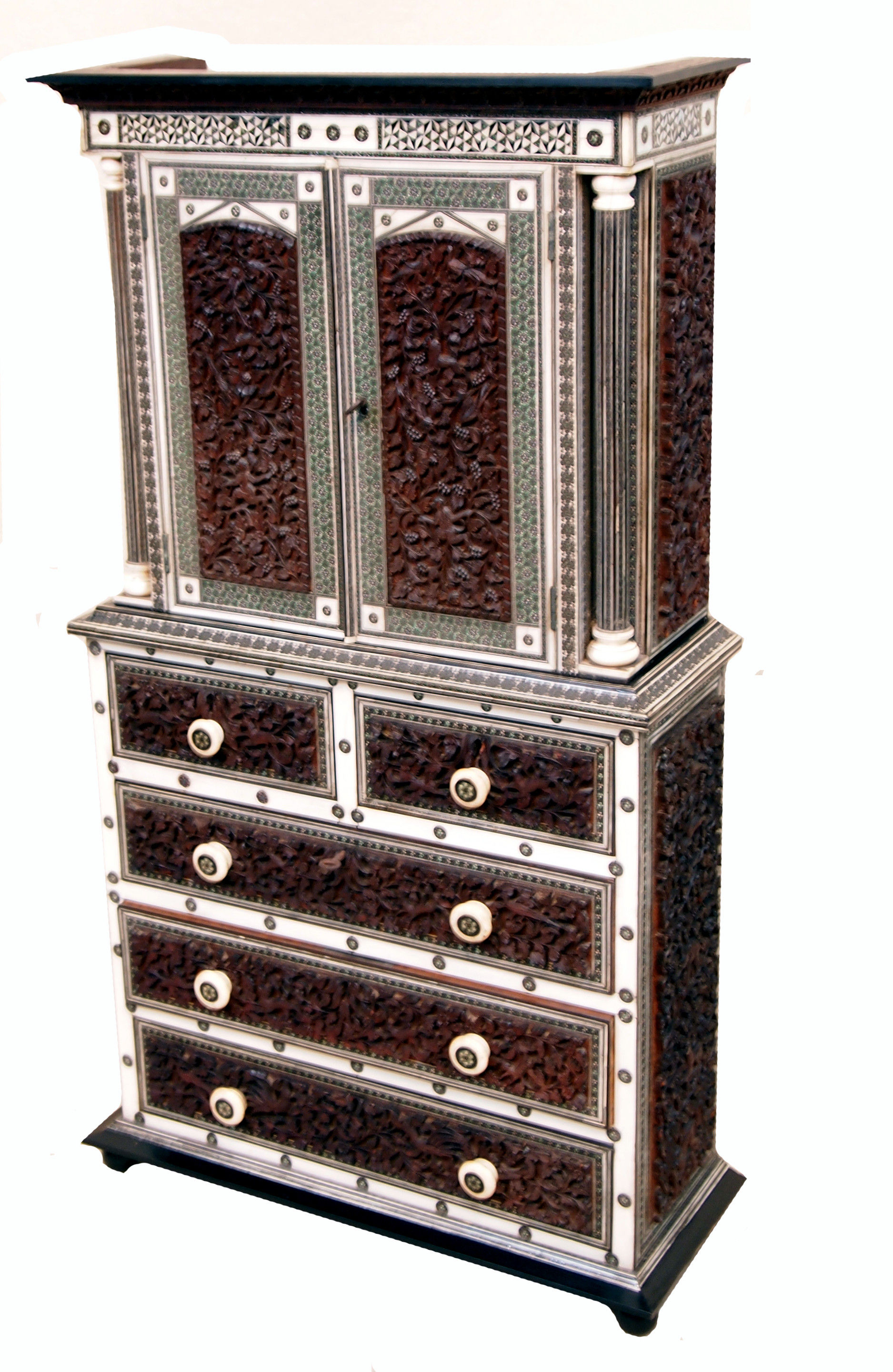 Antique Anglo Indian Miniature Cabinet On Chest (India, circa 1840)