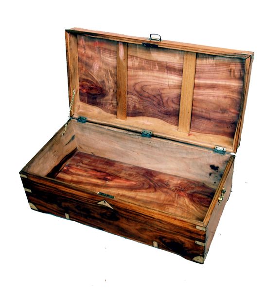 A Delightful Mid 19th Camphor Wood Military Campaign Trunk