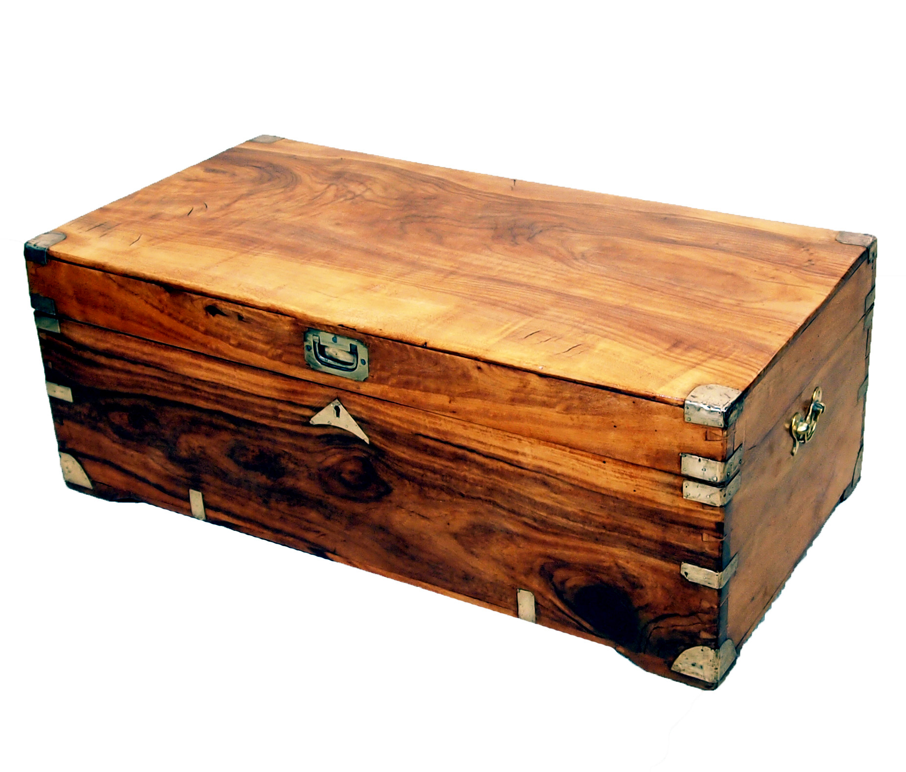 A Delightful Mid 19th Camphor Wood Military Campaign Trunk