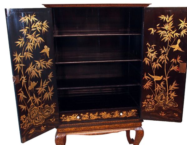 Antique Early 19th Century Chinese Export Lacquer Cabinet On Stand (China, circa 1820)