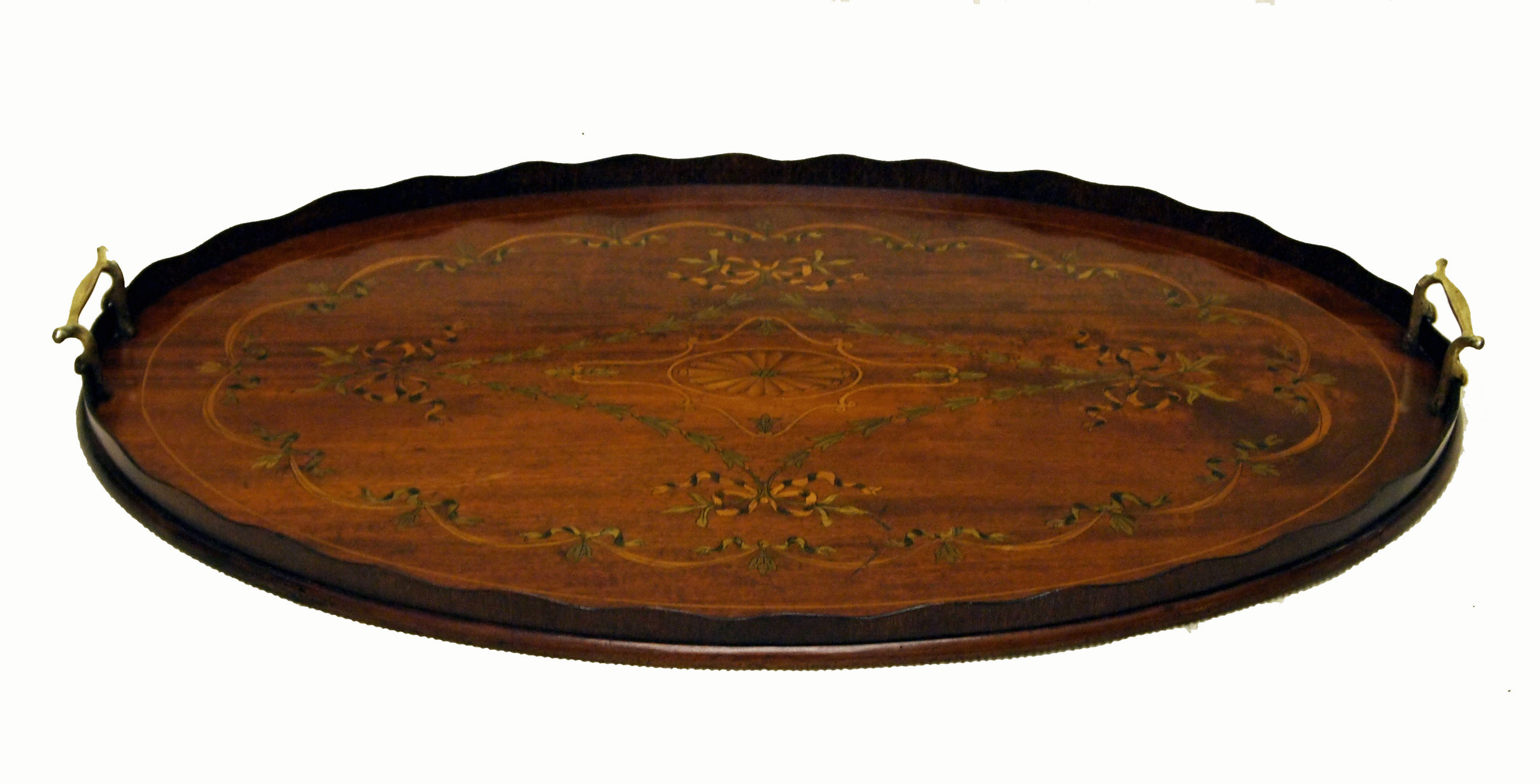 Antique Edwardian Mahogany Oval Inlaid Tray (England, circa 1890)