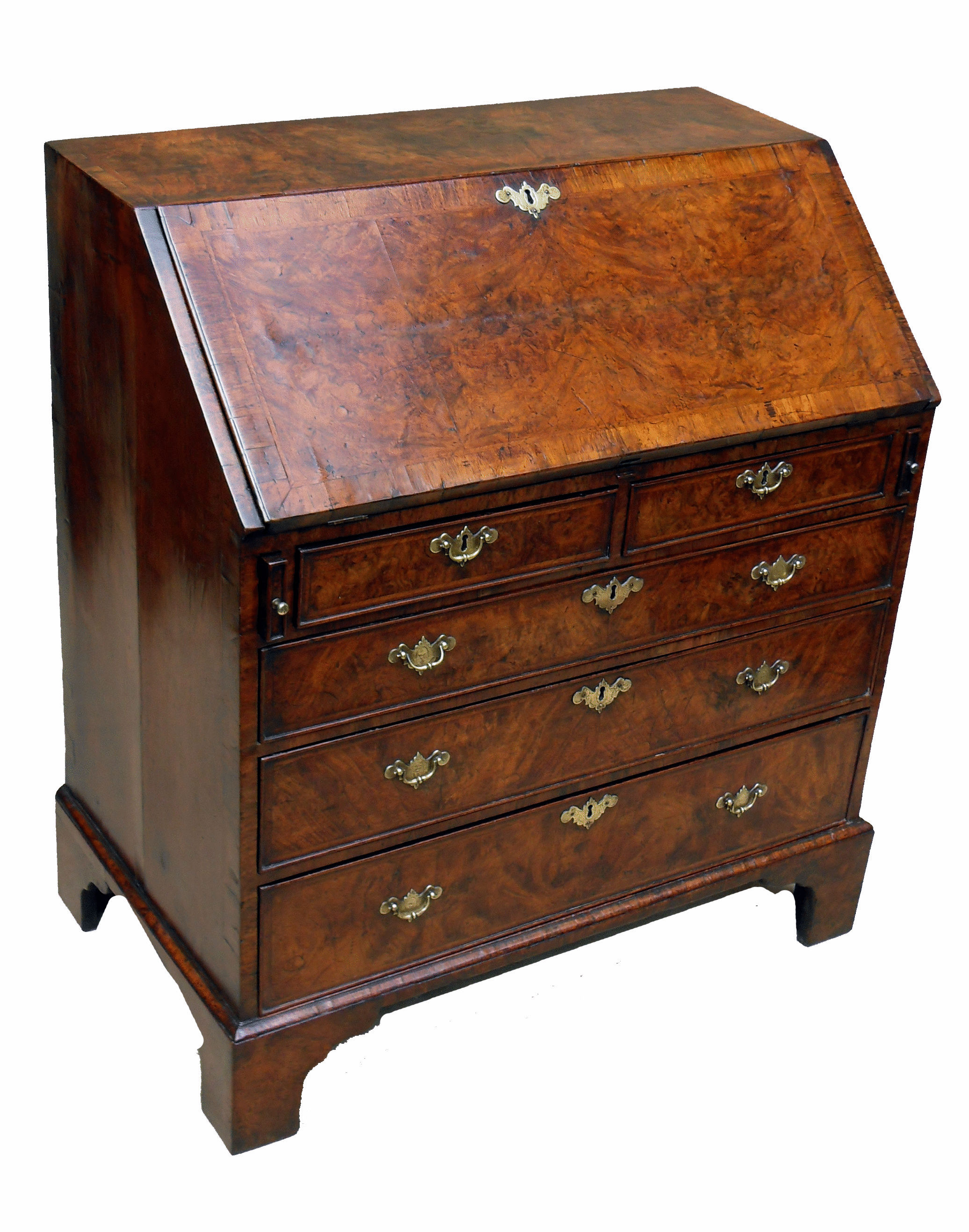 Antique Georgian Burr Walnut Bureau (England, circa 1725)