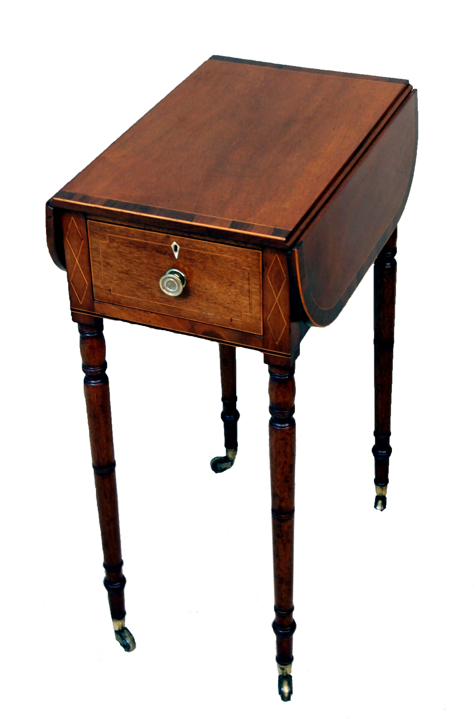 With Original Brass Castors And Boxwood Strung Decoration
