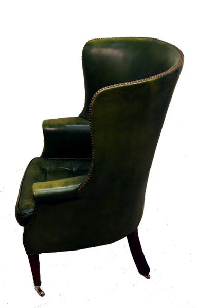 Antique Georgian Mahogany Barrel Back Wing Armchair (England, 1780)