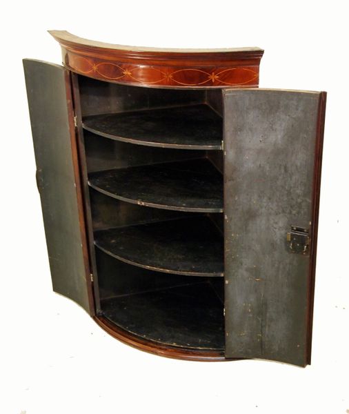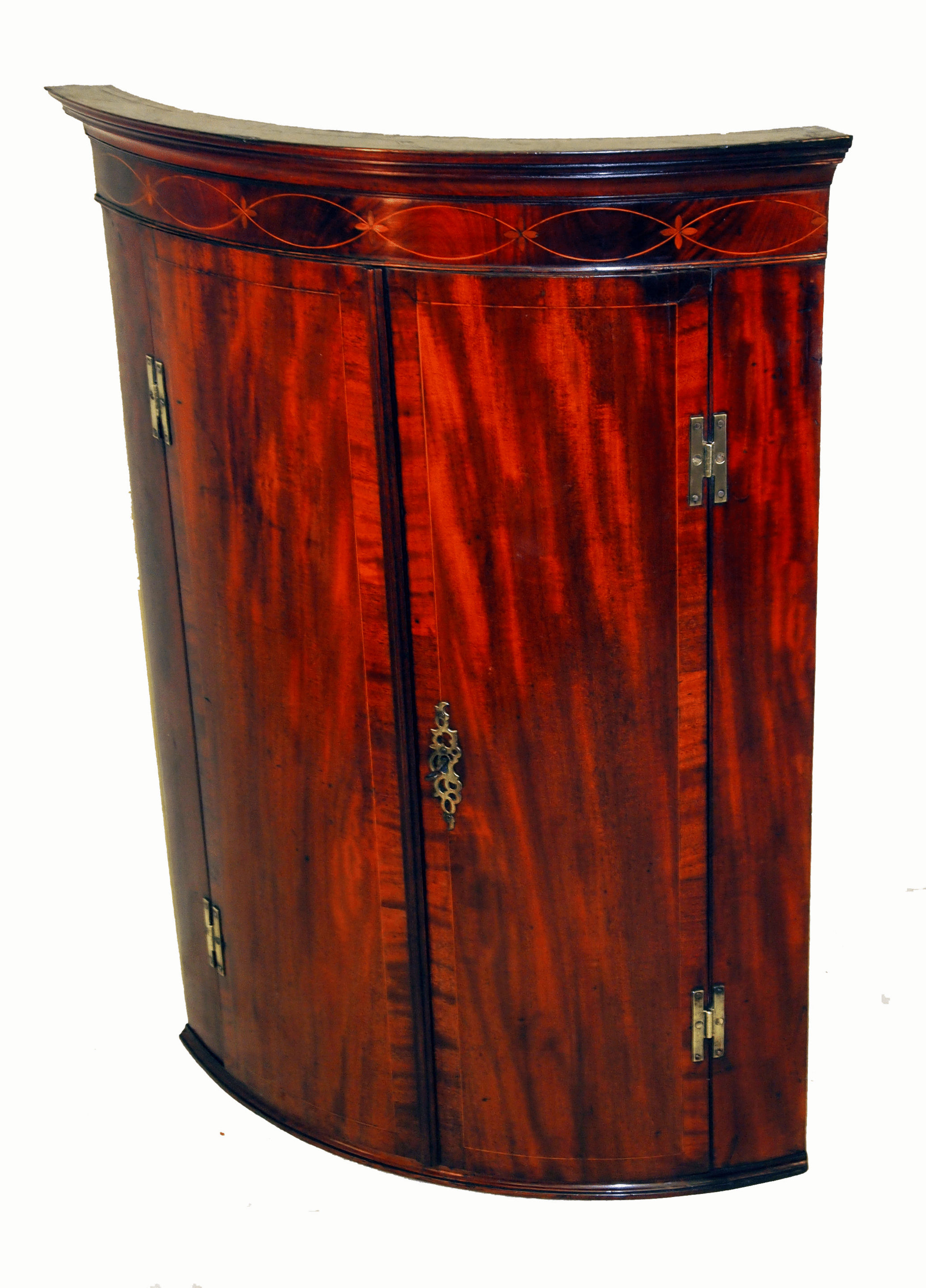 Antique Georgian Mahogany Bow Corner Cupboard (England, circa 1800)