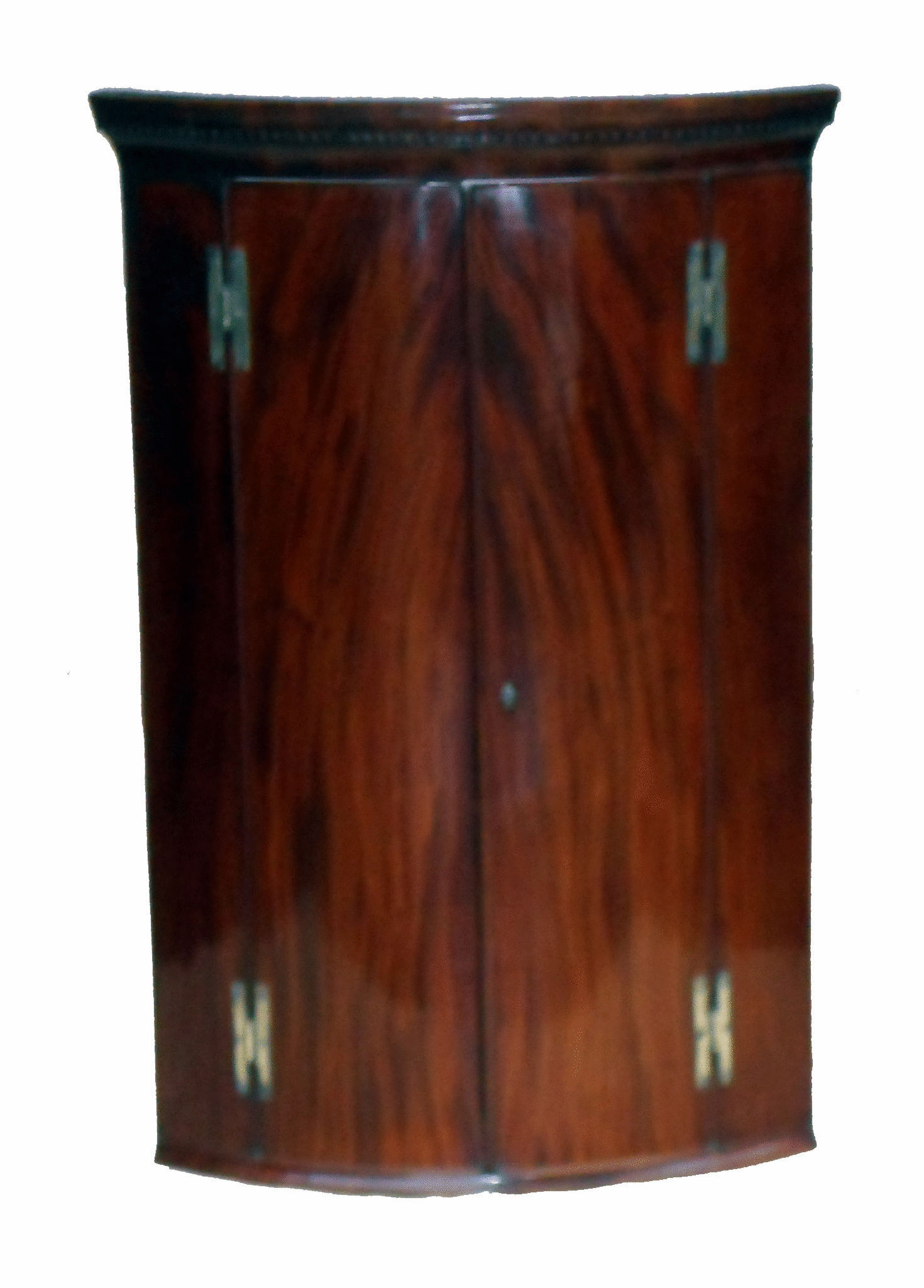 Antique Georgian Mahogany Bow Corner Cupboard (England, circa 1800)