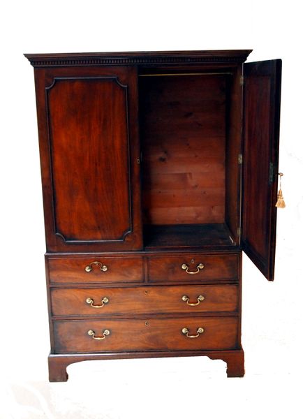 Antique Georgian Mahogany Linen Press (England, circa 1760)