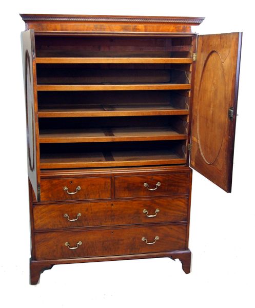 Antique Georgian Mahogany Linen Press (England, circa 1780)