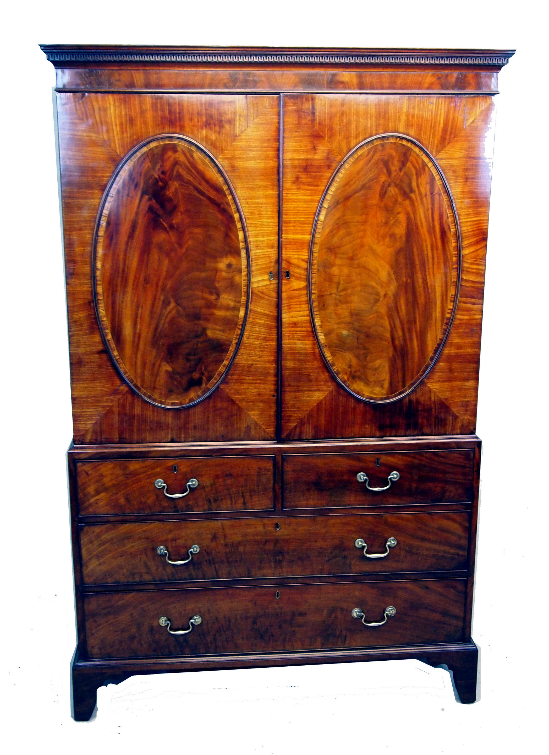 Superbly Figured Oval Panelled Doors To Top Above Two Short