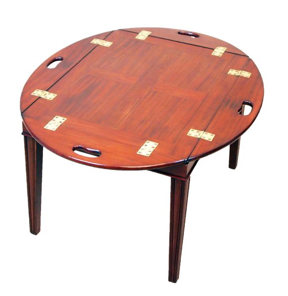 Antique Georgian Mahogany Oval Butlers Tray On Stand (England, circa 1800)