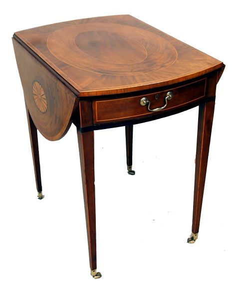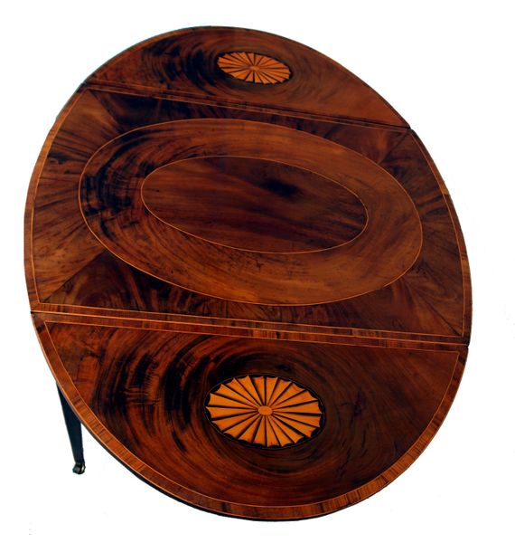 Oval Pembroke Table Having Superbly Figured Top With Inlaid
