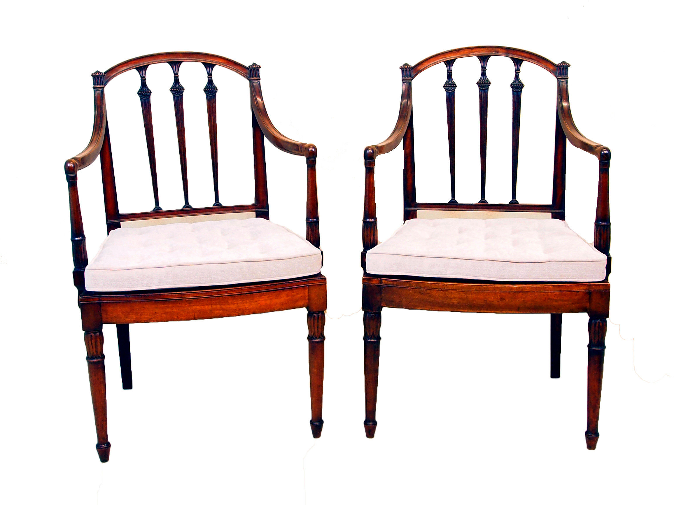 Antique Georgian Mahogany Pair Of Carver Chairs (England, circa 1800)