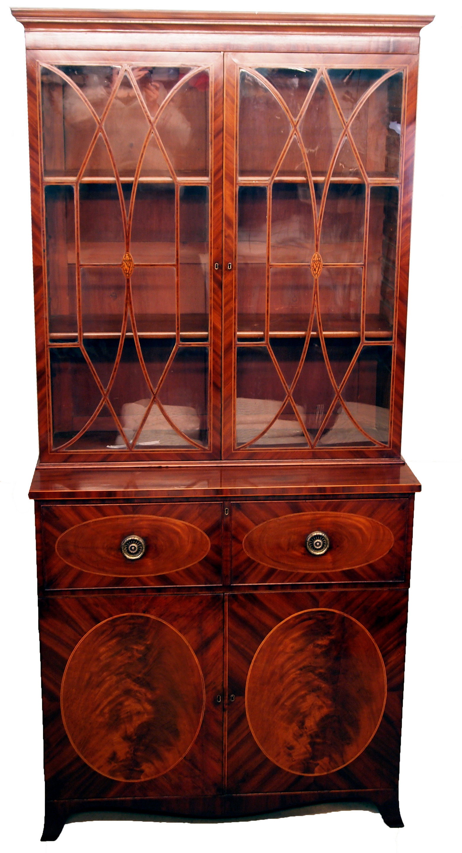 Antique Georgian Mahogany Secretaire Library Bookcase (England, circa 1790)