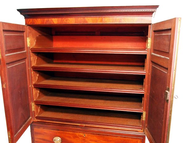 A Superb Quality George III Period Mahogany Linen Press Having Well Figured, Cross