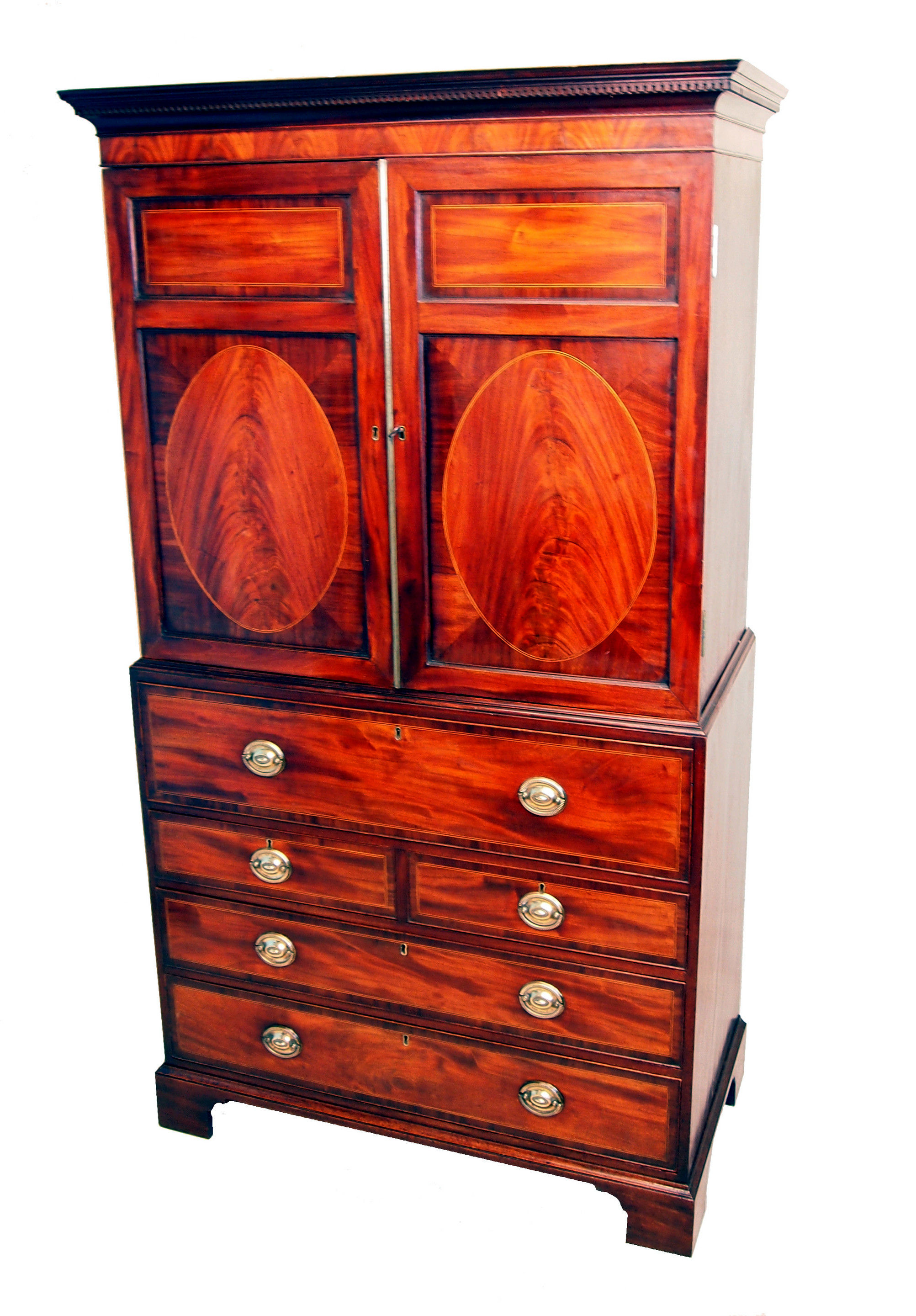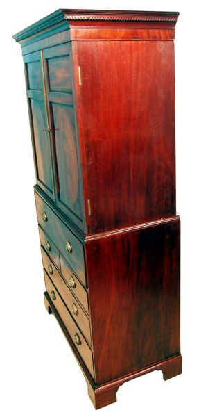 Antique Georgian Mahogany Secretaire Linen Press (England, circa 1790)