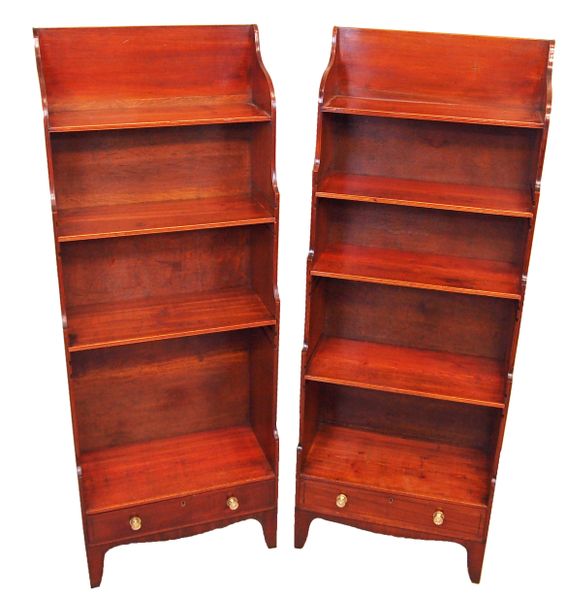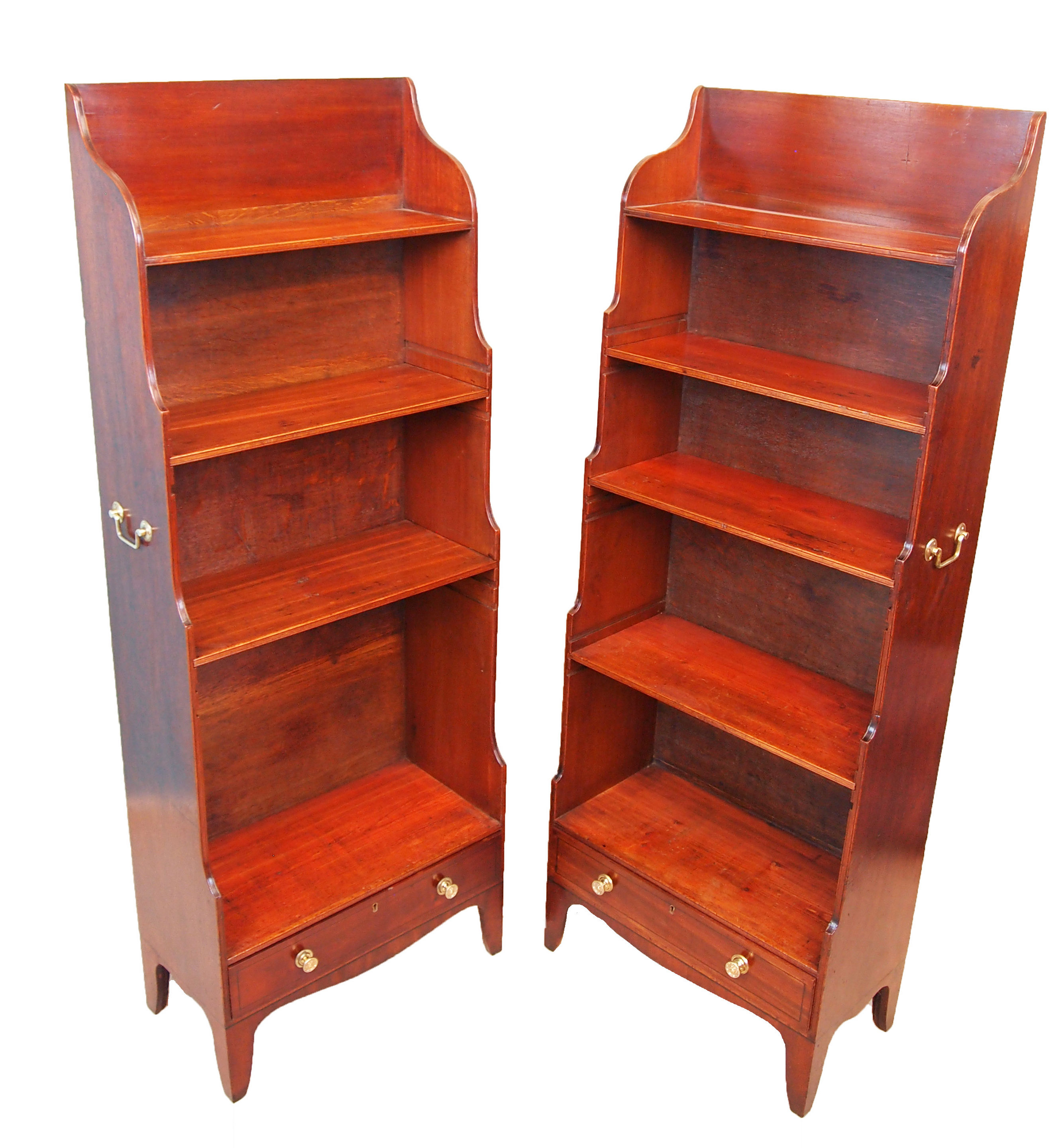 Antique Georgian Pair Of Mahogany Waterfall Bookcases (England, circa 1800)