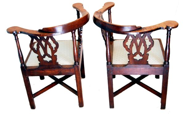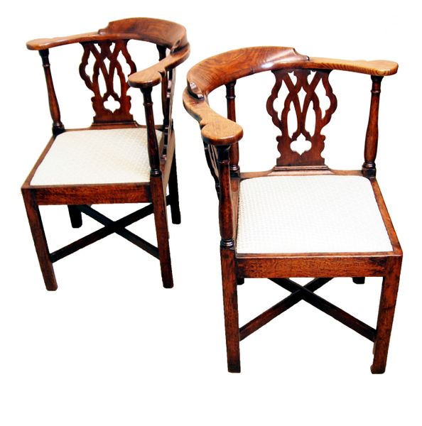 Antique Georgian Pair Of Oak Corner Chairs (England, circa 1760)