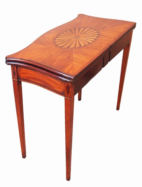 Antique Georgian Satinwood Serpentine Card Table (England, circa 1780)