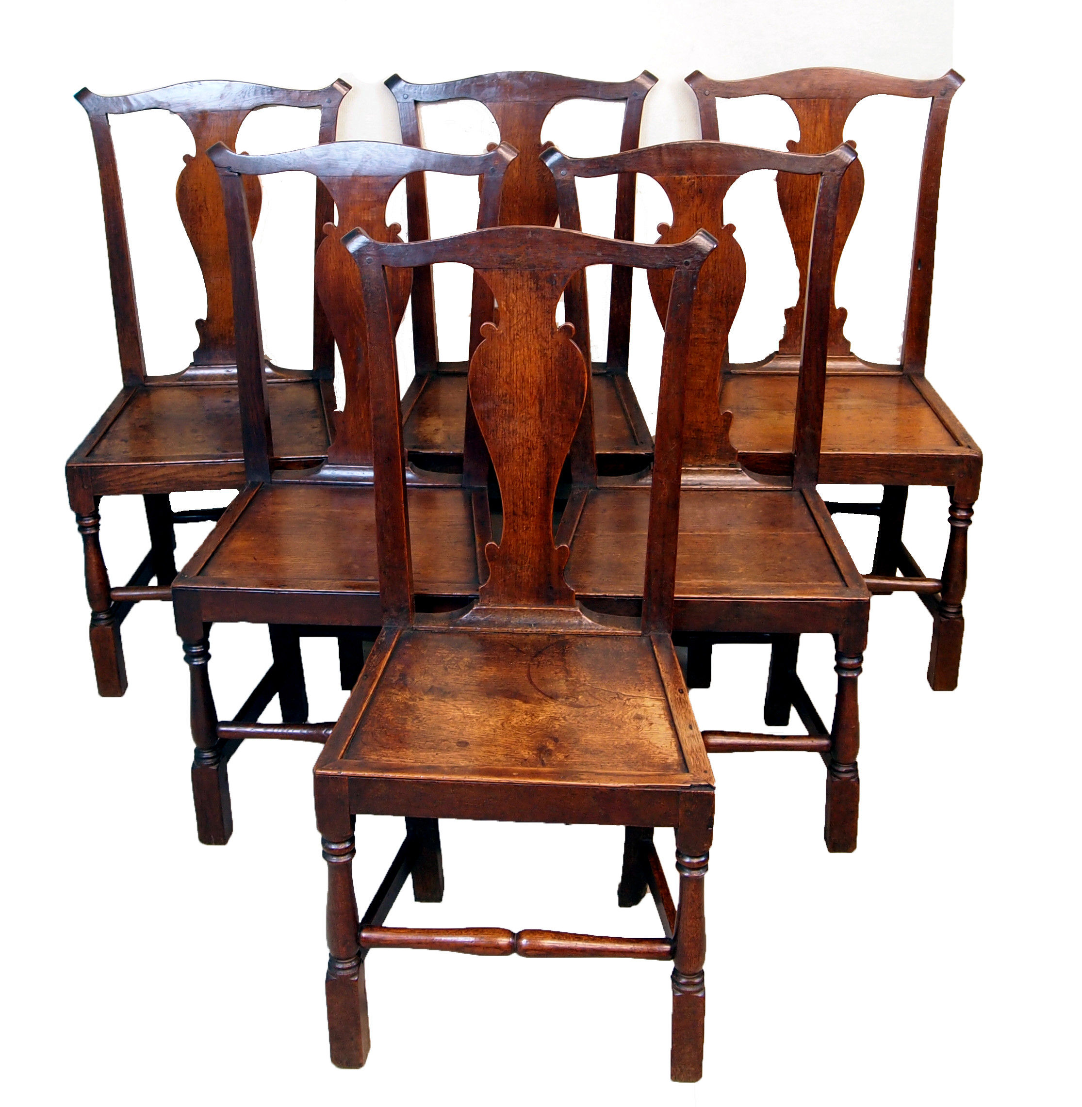 Antique Georgian Set Six Oak Dining Chairs (England, circa 1720)