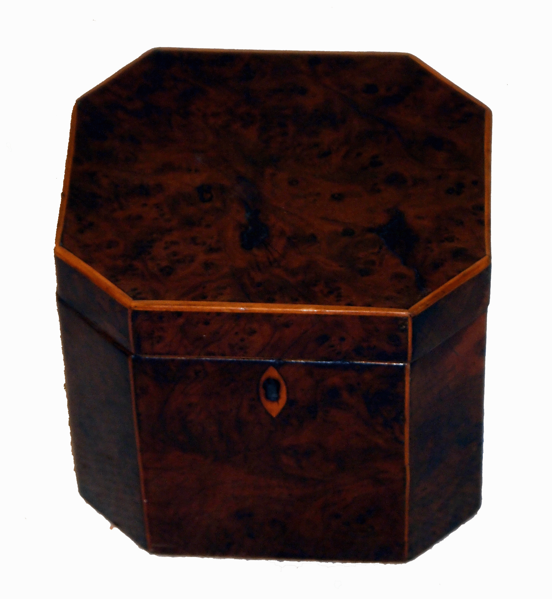 Antique Georgian Yew Wood Tea Caddy (England, circa 1820)