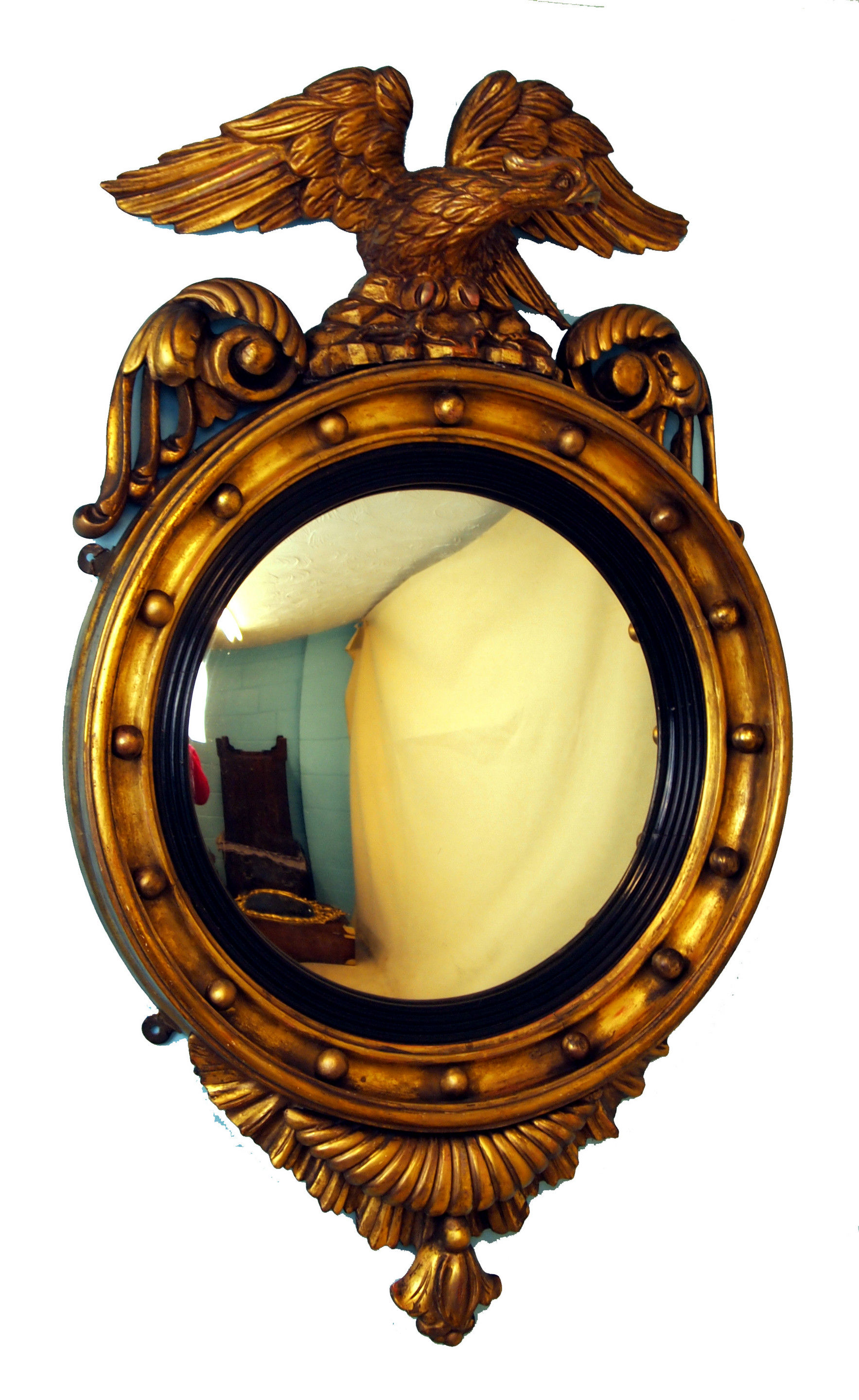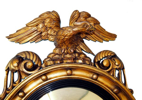 A Mid 19th Century Gilt Convex Mirror Having Carved