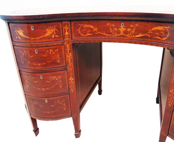 A Superb Quality Late 19th Century Mahogany Kidney Shaped Desk With