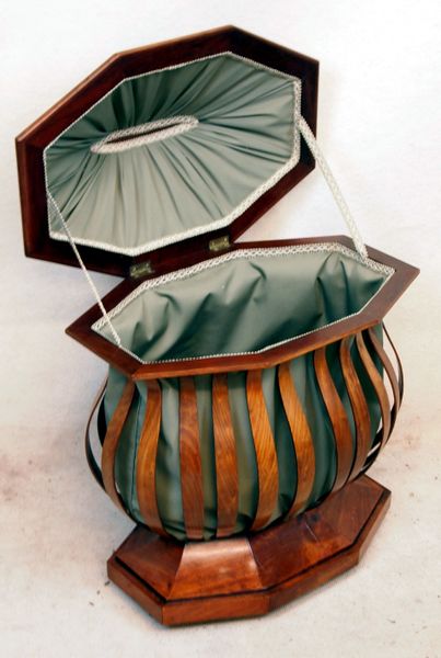 Continental Mahogany Work Box, Or Basket, Of Bold Bombe Form