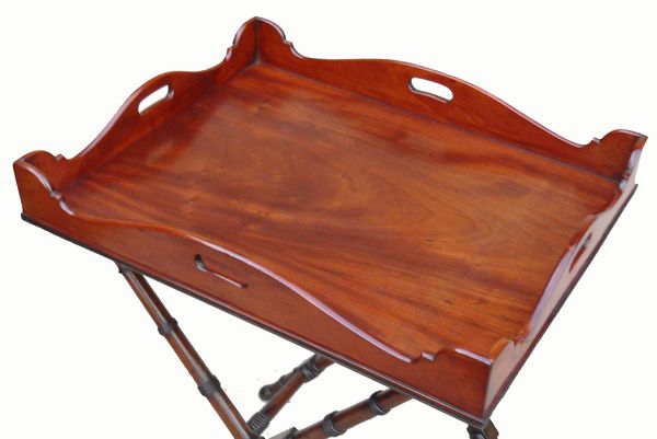 Antique Mahogany Butlers Tray On Original Stand (England, circa 1800)
